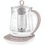 Стильный бежевый корпус объединяет пластик и стекло, создавая теплый и современный облик для любой кухни. Колба из закаленного стекла выглядит изящно и не влияет на вкус воды, а прозрачность позволяет контролировать процесс кипячения. Пластиковая база дополнена нескользящими ножками, которые обеспечивают устойчивость на столе и защиту от скольжения. Компактные габариты и небольшой вес упрощают хранение и транспортировку, при этом вместимость 1.5 л подходит для семьи или офиса.