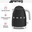 Чайник Smeg KLF03BLMEU относится к коллекции в духе 50-х годов 20 века. Округлый корпус матового черного цвета с хромированными деталями смотрится очень стильно. Общий объем его составляет 1,7 литра, так что модель подойдет для большой семьи. Мощность 2400 Вт гарантирует быстрое закипание. На корпусе имеется прозрачное окошко со шкалой уровня воды. Для включения предусмотрена удобная ручка. Чайник Смег KLF03BLMEU снабжен фильтром из нержавеющей стали для защиты от попадания накипи.