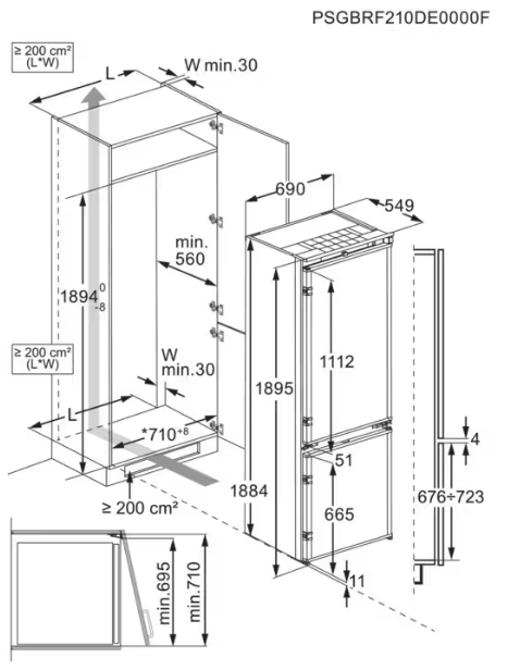 - Габариты ниши для встраивания (ВхШхГ): 178х56х55 см