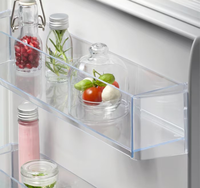 Полки в холодильнике позволяют рационально организовать хранение продуктов, обеспечить легкий поиск и доступ к ним. Основные материалы для изготовления полок — это пластик, стекло и металл. Часть полок можно переставлять по высоте или складывать вдвое или втрое.
