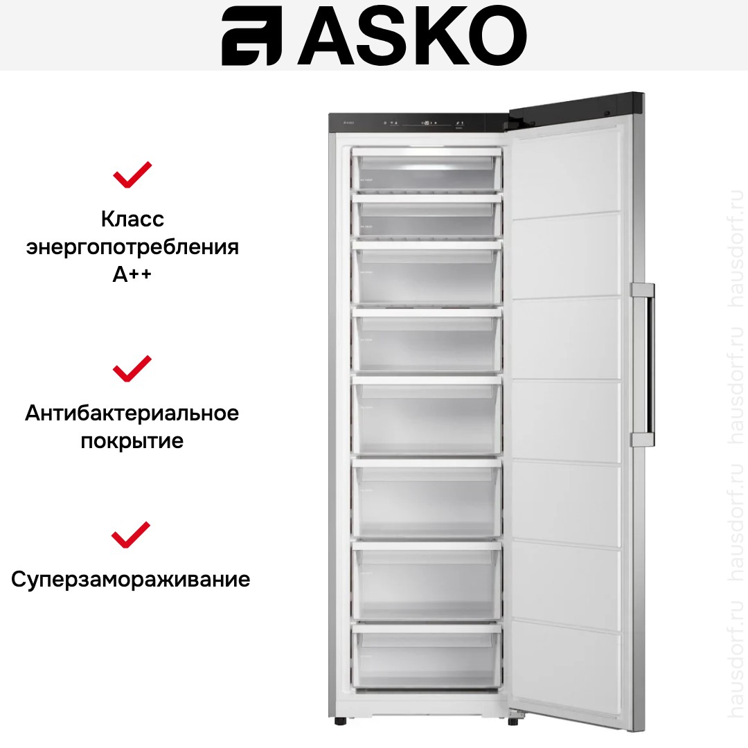 Морозильная камера ASKO RFF286KNCS1 представляет собой продуманное решение для тех, кто ценит сдержанную элегантность и функциональность: корпус в цвете нержавеющая сталь выполнен в дизайне Series 2 с рукоятью, украшенной гравировкой бренда, что придает прибору стильный и профессиональный вид, позволяющий гармонично вписать его в современное кухонное пространство. При высоте 185 см, ширине 59 см и глубине 59 см агрегат занимает минимум места относительно полезного объема: при общем объеме 337 л доступный объем составляет 294 л в единственной морозильной камере с одной дверью и дверным упором справа, при этом конструкция допускает перевешивание створки и установку Side-by-Side, а также монтаж в стандартную кухонную нишу KitchenFit. Система No Frost исключает образование наледи, упрощая эксплуатацию, а функция суперзамораживания повышает скорость быстрого охлаждения до 16 кг в сутки, что поддерживает качество продуктов при интенсивной загрузке; в случае отключения питания запас холода сохраняется до 17 часов. Управление полностью электронное с сенсорными кнопками и LED-дисплеем, обеспечивая точную регулировку температуры и визуальную индикацию статуса, а приложение ConnectLife.TRIR расширяет возможности контроля и настройки удаленно; предусмотрены адаптивный температурный контроль и светодиодное внутреннее освещение, упрощающее поиск и организацию продуктов. Внутреннее пространство спроектировано для удобства — восемь ящиков/отделений создают стройную систему хранения, а лоток для приготовления кубиков льда делает эксплуатацию еще комфортнее; контроль уровня влажности помогает сохранить оптимальные условия хранения, дополнительные режимы включают Шаббат, Вечеринка и Режим очистки, позволяющие гибко подстраивать работу под различные сценарии использования. Экологичный хладагент R600A в сочетании с инверторным компрессором и циркуляционной системой охлаждения обеспечивает эффективный теплообмен и низкий уровень шума — всего 34 дБ, при этом прибор характеризуется классом энергопотребления A++ и годовым расходом энергии 297 кВт·ч, а потребляемая мощность при подключении составляет 180 Вт. Практичные детали включают трехметровый сетевой шнур, регулируемые ножки для надежной установки на неровной поверхности, звуковую индикацию открытой двери и световую со звуковой сигнализацией при повышении температуры, а также один компрессор, обеспечивающий стабильную работу. Габариты упаковки 192×66×73 см и вес нетто 69,5 кг упрощают транспортировку и размещение, при этом вес брутто составляет 71,5 кг. Этот морозильник сочетает в себе строгий внешний вид и широкий набор функций, ориентированных на безопасность продуктов и комфорт пользователя, предлагая надежную работу и современные технологии для тех, кто требует от техники максимальной эффективности и удобства.