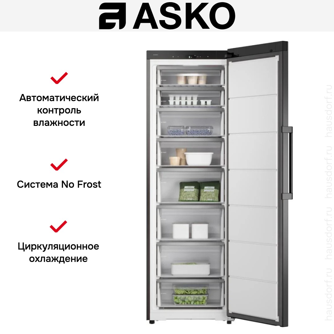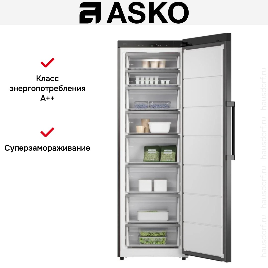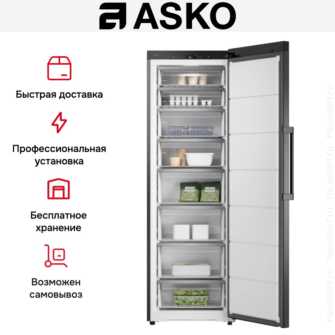 Морозильник ASKO RFF586KNCB1 — отдельностоящая морозильная камера серии 5 в стильном черном исполнении. Высота изделия 185 см, ширина и глубина по 59 см, общий объем 337 литров, полезный 294 литра. Одна дверь с правым дверным упором и возможностью перевешивания упрощает адаптацию к планировке кухни. Упаковочные размеры 192×66×73 см, вес нетто 69,5 кг, вес брутто 71,5 кг.