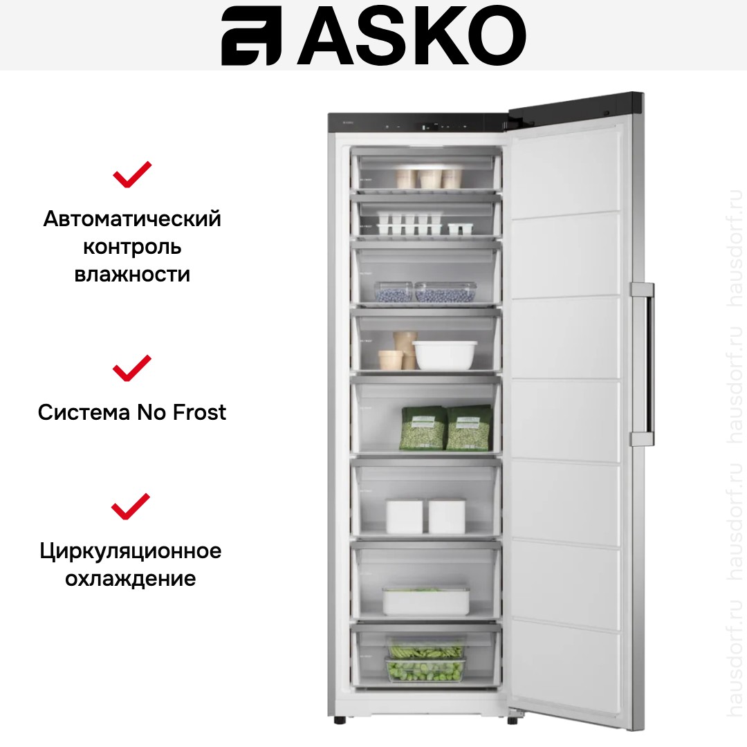 Морозильная камера ASKO RFF586KNCS1 представляет собой элегантное и функциональное решение для тех, кто ценит стиль и производительность: корпус в цвете «нержавеющая сталь» оформлен в дизайне Series 5 и оснащён вычурной ручкой с гравировкой бренда, а продуманная задняя стенка из нержавеющей стали AISI 304 обеспечивает долговечность и простоту ухода. При высоте 185 см и компактной площади основания 59×59 см прибор идеально вписывается в кухонную нишу благодаря поддержке KitchenFit и опции установки Side-by-Side; упаковочные габариты 192×66×73 см облегчают доставку и монтаж. Объём агрегата внушителен — общий 337 л, из них полезно 294 л, размещённых в одной температурной зоне с восемью прозрачными ящиками на телескопических направляющих, что обеспечивает удобный доступ и грамотное зонирование запасов. Система циркуляционного охлаждения с инверторным компрессором и экологичным хладагентом R600A поддерживает стабильную температуру, а технология No Frost исключает образование инея, избавляя от ручного оттаивания; функция суперзамораживания и способность замораживать до 16 кг в сутки пригодятся для быстрого сохранения свежести больших партий продуктов, а автономное сохранение холода в течение 17 часов сохраняет содержимое при временных отключениях питания. Управление выполнено в электронной форме с сенсорными кнопками и ярким TFT-дисплеем, предусмотрены тактильная обратная связь и совместимость с приложением ConnectLife для удалённого контроля; регулировка температуры и адаптивный контроль поддерживают стабильный климат, а индикация — световая и звуковая — оперативно сигнализирует о повышении температуры или оставленной открытой дверце. Внутреннее светодиодное освещение делает содержимое прозрачным и легко обозримым, а наличие лотка для приготовления льда добавляет практичности. Прибор обладает широким набором пользовательских функций: контроль уровня влажности, режим Шаббат, функция «Вечеринка», ночной режим и режим очистки дают гибкость в эксплуатации и упрощают обслуживание. Технические параметры включают один компрессор, класс энергопотребления A++ с годовым расходом 297 кВт·ч, номинальное напряжение 220-240 В при частоте 50-60 Гц, мощность подключения 180 Вт и уровень шума 34 дБ, длина сетевого кабеля 3 м, возможность перевешивания дверцы и регулировки ножек для точной установки. Этот морозильный аппарат с одной дверью и правым дверным упором сочетает в себе премиальный внешний вид, продвинутые функции хранения и высокую энергоэффективность, что делает его надёжным выбором для семей и тех, кто ведёт активную гастрономическую жизнь.