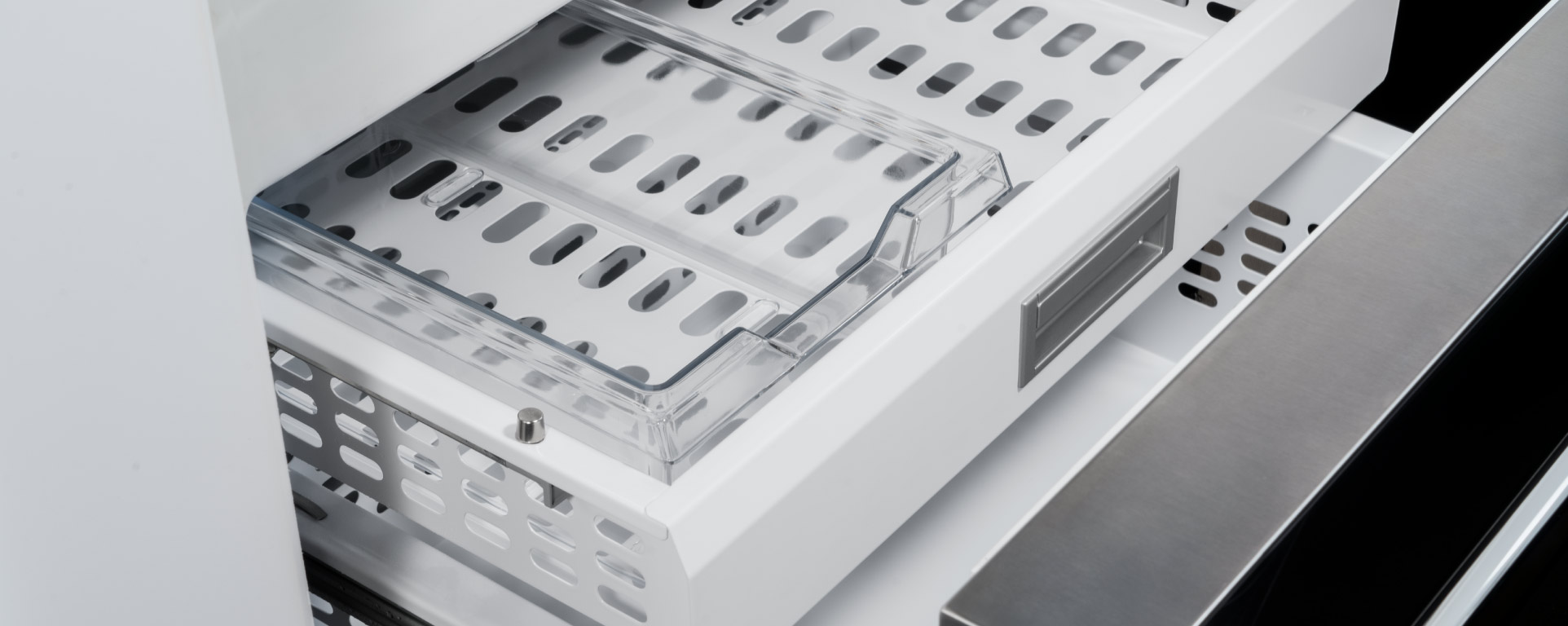 Ящики для овощей и фруктов можно найти в любой холодильной камере, какого размера ни был бы ваш холодильник — от большого устройства Side-by-Side до стандартной двухкамерной модели. В простейшем варианте они представляют собой обычные выдвижные ящики из пластика в нижней части камеры.