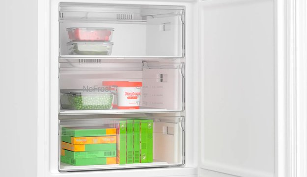 No Frost (Total No Frost, Frost Free): вентилятор обеспечивает циркуляцию охлажденного воздуха, благодаря чему лед не нарастает на стенке, а концентрируется только на скрытом внутри холодильника испарителе. Талая вода собирается в специальной емкости и испаряется. Такой холодильник не нужно размораживать – это экономит время и позволяет не останавливать прибор. Благодаря этим плюсам в современных моделях No Frost – самая распространенная система.