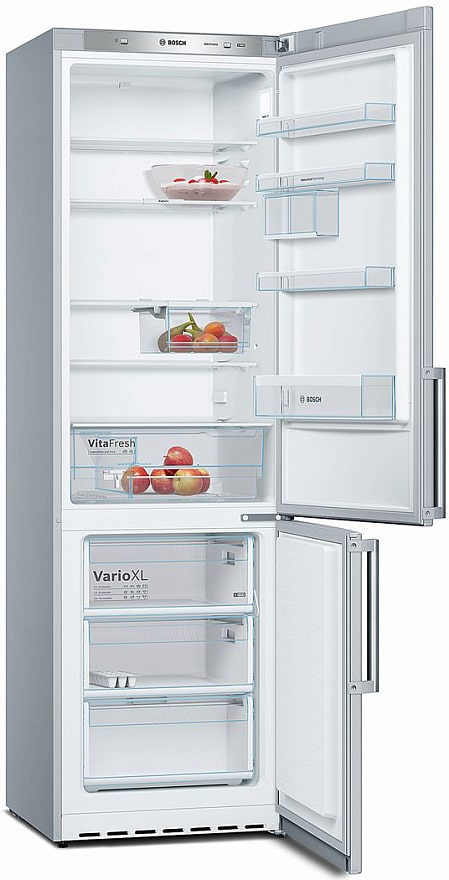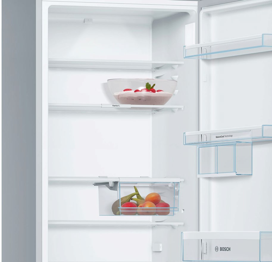 Bosch KGE39XL2OR — оптимальное решение для кухонного интерьера в стиле Hi-Tech. Модель предусматривает наличие двух независимых контуров охлаждения и обладает универсальным климатическим классом — SN-T. Технология NatureCool способствует поддержанию оптимального уровня влажности в холодильнике, благодаря чему продукты дольше остаются свежими. Ящик с контролем уровня влажности увеличивает срок хранения овощей, фруктов, молочных продуктов. В холодильном отделении предусмотрены регулируемые по высоте полки и большой ящик для овощей и фруктов. Холодильная камера размораживается автоматически. Световые и звуковые индикаторы предупредят о неисправности, повышении температуры и об открытой дверце.