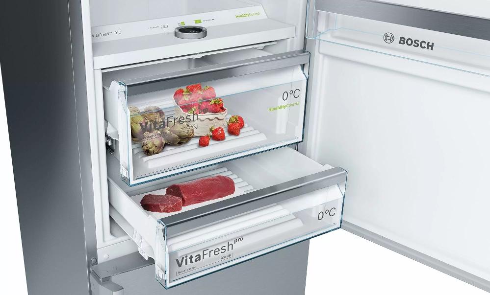 Вместительные контейнеры позволяют хранить достаточное количество овощей и фруктов. Для более длительного хранения и поддержания свежести овощей и фруктов разработаны специальные системы хранения. Среди них, например, зона свежести с увеличенной влажностью до 85% и температурой около 0 градусов. Это герметично закрывающийся ящик, часто на выдвижных роликах или направляющих, в котором имеется специальное задвижка, позволяющая регулировать влажность. Как известно, при более высокой влажности продукты с большим содержанием воды дольше остаются свежими.