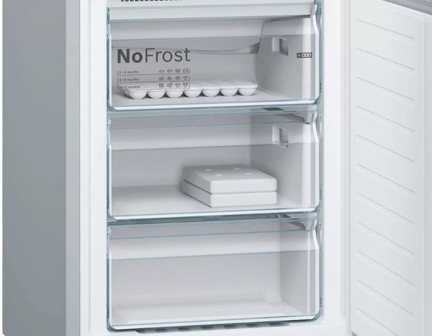 No Frost (Total No Frost, Frost Free): вентилятор обеспечивает циркуляцию охлажденного воздуха, благодаря чему лед не нарастает на стенке, а концентрируется только на скрытом внутри холодильника испарителе. Талая вода собирается в специальной емкости и испаряется. Такой холодильник не нужно размораживать – это экономит время и позволяет не останавливать прибор. Благодаря этим плюсам в современных моделях No Frost – самая распространенная система.