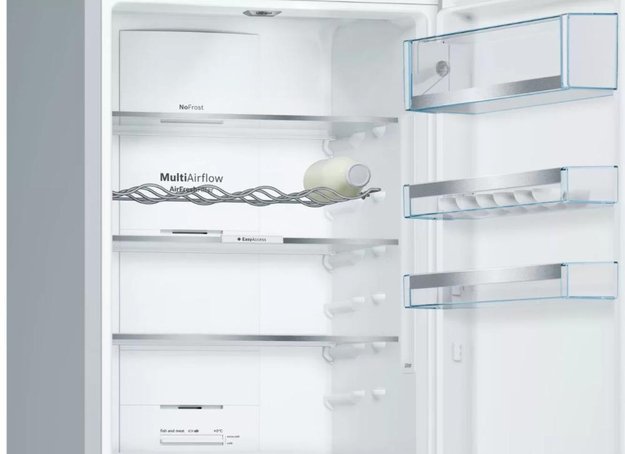 Охлаждение Multi AirFlow в холодильниках Bosch — многопоточная система, которая с помощью вентилятора распределяет холодный воздух по всему пространству холодильной камеры. Воздушные потоки достигают самых труднодоступных уголков, так что температура и влажность во всей камере выравнивается.