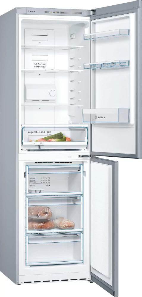 Bosch KGN39NL14R — двухкамерный холодильник с системой NoFrost. Модель характеризуется отдельностоящим типом установки и снабжена перенавешиваемыми дверцами. Отделение с контролем уровня влажности оптимально подходит для длительного хранения фруктов и овощей.