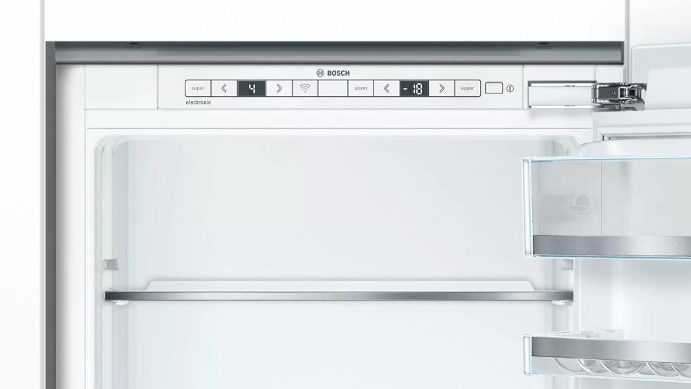 Встраиваемая холодильно-морозильная комбинация с классом энергопотребления, А+. Объем этой компактной модели высотой 177 см составляет 255 литров. Полное встраивание и скрытая ручка позволяют удобно установить ее в кухне, скрыв за декоративным фасадом. Как и другие холодильники из Серии 6, устройство выделяется высококачественными комплектующими и минимальным потреблением электроэнергии. Инверторный компрессор Bosch VarioInverter отличается долговечностью и низким уровнем шума 39 дБ. Два контура охлаждения позволяют раздельно регулировать температуру в камерах при помощи электронной системы управления с дисплеем.