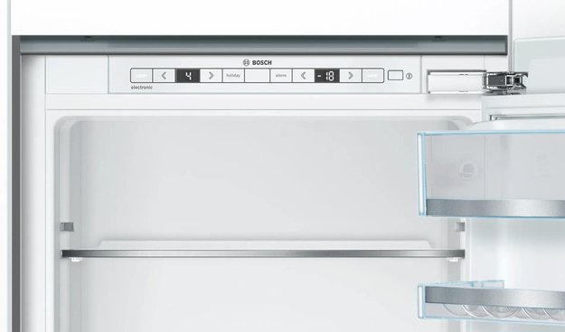 Встраиваемый двухкамерный холодильник Bosch KIS86AFE0 — замечательный выбор для всех, кто нуждается в надежном и современном приборе, чтобы обустроить кухню по последнему слову техники.