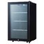 Как правило, объем подобного мини-холодильника не превышает 50-70 литров. Он имеет одну дверцу, за которой размещаются две или три полки в основной камере, полки на дверце для хранения бутылок и иногда небольшая верхняя морозильная камера с контейнером для льда. Мини-бар может встраиваться в тумбу стола или в шкаф за декоративным мебельным фасадом; в некоторых случаях подобное устройство устанавливается под столешницей и может иметь прозрачную дверцу.