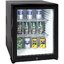 Как правило, объем подобного мини-холодильника не превышает 50-70 литров. Он имеет одну дверцу, за которой размещаются две или три полки в основной камере, полки на дверце для хранения бутылок и иногда небольшая верхняя морозильная камера с контейнером для льда. Мини-бар может встраиваться в тумбу стола или в шкаф за декоративным мебельным фасадом; в некоторых случаях подобное устройство устанавливается под столешницей и может иметь прозрачную дверцу.