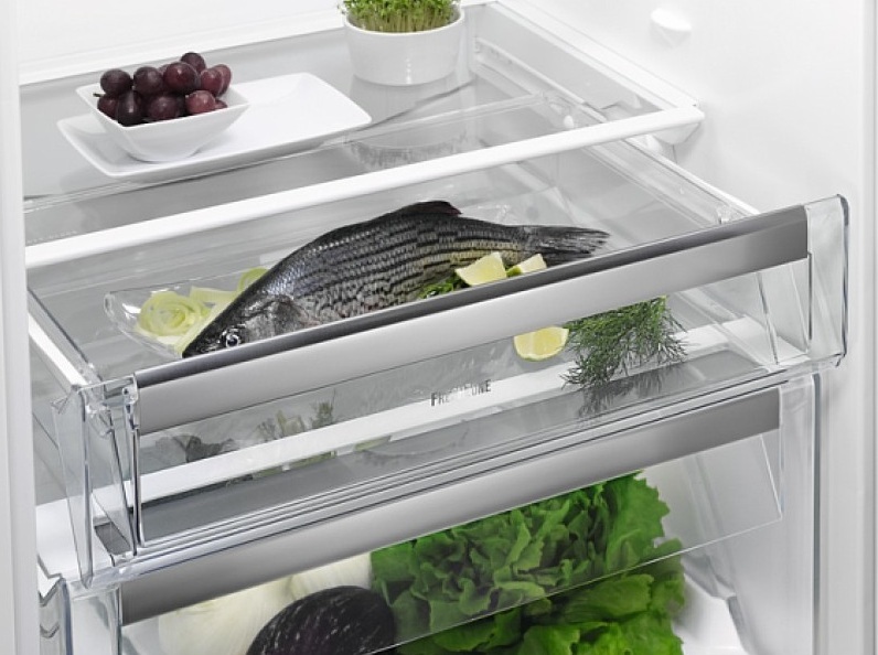 Вместительные контейнеры позволяют хранить достаточное количество овощей и фруктов. Для более длительного хранения и поддержания свежести овощей и фруктов разработаны специальные системы хранения. Среди них, например, зона свежести с увеличенной влажностью до 85% и температурой около 0 градусов. Это герметично закрывающийся ящик, часто на выдвижных роликах или направляющих, в котором имеется специальное задвижка, позволяющая регулировать влажность. Как известно, при более высокой влажности продукты с большим содержанием воды дольше остаются свежими.