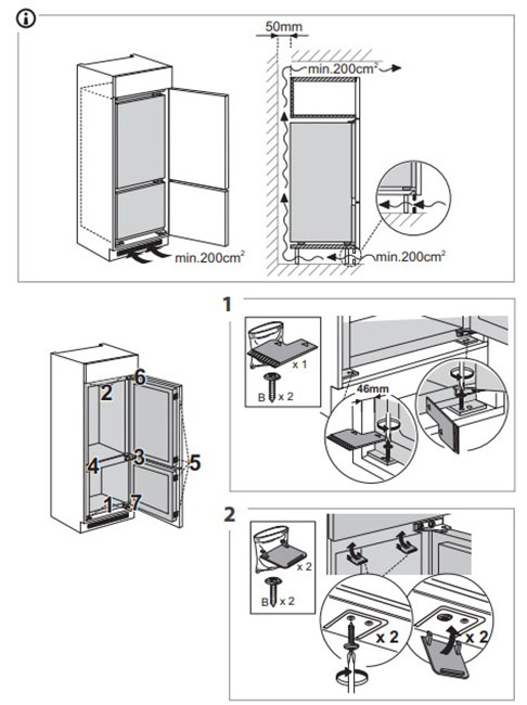 При всем сходстве с обычными отдельностоящими холодильниками частично встраиваемые модели имеют свои конструктивные особенности. Они связаны прежде всего с тем, что при встраивании необходимо обеспечить вентиляцию задней и боковых стенок, а также снизить уровень шума и вибраций. Как правило, проблема решается при помощи специальной системы вентиляции, когда вентиляционные решетки располагаются в нижней части корпуса холодильника.