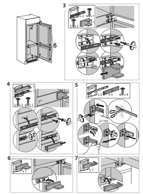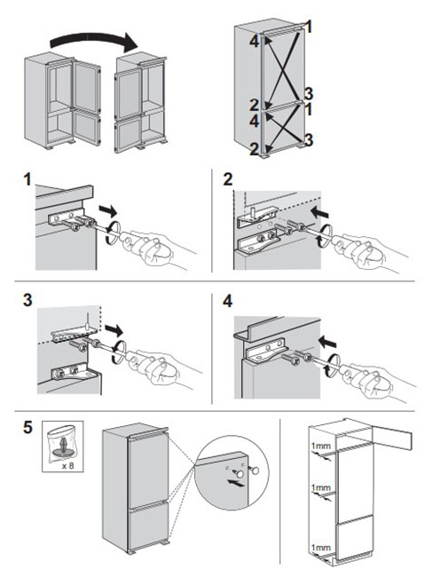 Перевешиваемая дверца холодильника — удобная опция, которая позволяет встроить или установить прибор на кухне, выбрав оптимальное место размещения. По умолчанию открывание дверцы холодильников осуществляется слева направо, под ведущую правую руку. Ситуаций, в которых требуется перенос дверного упора на левую сторону, достаточно много. Прежде всего это планировка кухни. Не везде можно установить холодильник, тем более встраиваемый, так, чтобы дверь открывалась вправо — это особенно важно, если прибор монтируется в уже готовую кухонную мебель. Перенести дверь на другую сторону требуется также, если владелец имеет ведущую левую руку.