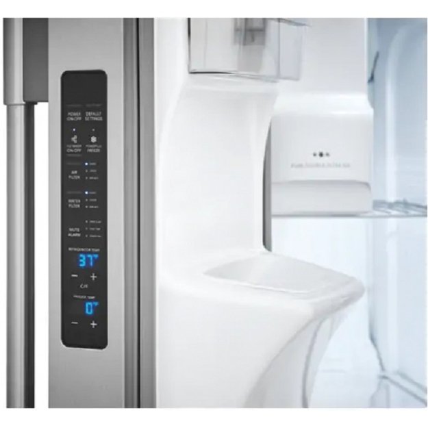 Холодильник Side-by-Side с контролируемой зоной свежести, функцией быстрой заморозки и встроенным ледогенератором. Боковой дисплей с 11 клавишами дает вам возможность регулировать температуру, включать и выключать подсветку, выбирать режим диспенсера. Вместительные ящики для овощей и фруктов, полка для четырехлитровых бутылок, тонкий отсек для пиццы — система грамотного распределения большого количества продуктов.