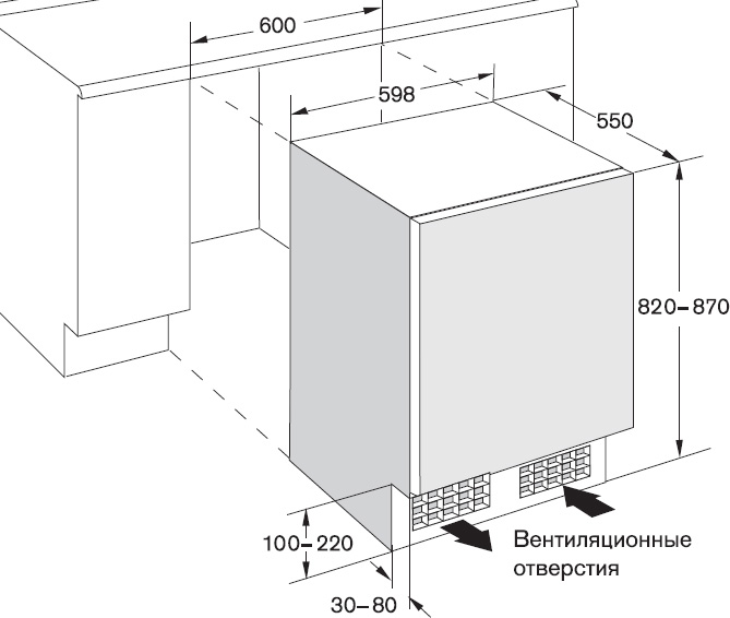 Мини-холодильники, которые могут быть установлены в тумбу или под столешницу, отличаются несколько меньшей шириной от 50 см. Такую же небольшую ширину имеют встраиваемые модели, что связано со способом их установки.