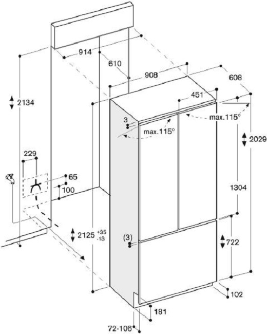 Глубиной холодильника называется расстояние от его фронтальной части до задней стенки. Известно, что при установке холодильника к стене между его задней стенкой и поверхностью должно оставаться расстояние около 8-10 см, необходимое для нормальной вентиляции. С этим также связаны ограничения на глубину этих устройств.