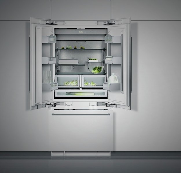 Встраиваемый холодильник Gaggenau RY 492-301 — модель из серии Vario 400, которая объединяет профессиональное качество хранения и возможность установки дома. Холодильная камера с распашными французскими дверями, нулевая зона свежести и морозильный ящик в нижней части создают оптимальные условия для охлаждения и замораживания. Корпус изготовлен из стали, антибактериальное покрытие защищает от отпечатков пальцев, плесени и грибка. На дверцу жестко навешивается декоративный фасад по системе door on door. Общий полезный объем составляет 526 л, емкость морозильной камеры — 146 л, зоны свежести — 25 л.