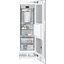 Морозильник Gaggenau встраивается в мебель, открывается с помощью ручки или автоматически. На двери расположен ледогенератор с постоянной подачей воды, режимы работы: лед, крошка и охлажденная вода. В камере установлены полки из закаленного стекла, две из них можно переставить по высоте. Цвет — нержавеющая сталь и темный антрацит.