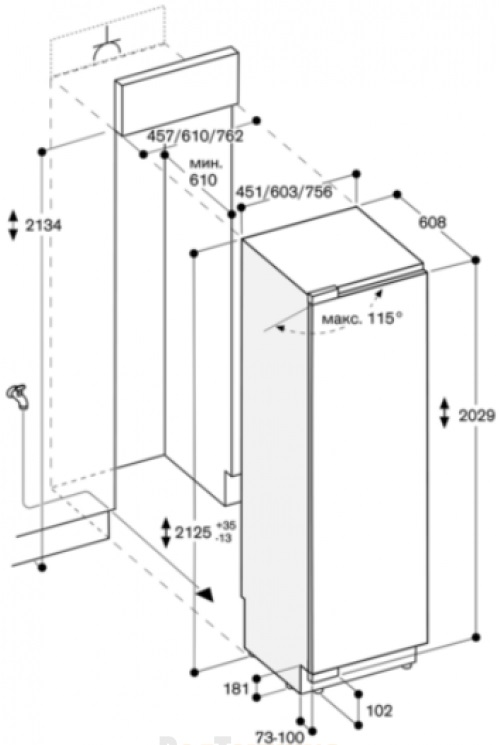 - Габариты ниши для встраивания (ВхШхГ): 213.4х45.7х61 см