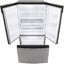 Холодильники с так называемой французской дверью или French Door также имеют распашные двери, но за ними находится не две, а одна камера. Эти двери занимают не всю высоту холодильника, а только ее часть. В нижней части подобных холодильников могут находиться либо еще две распашные двери, либо выдвижные морозильные ящики.