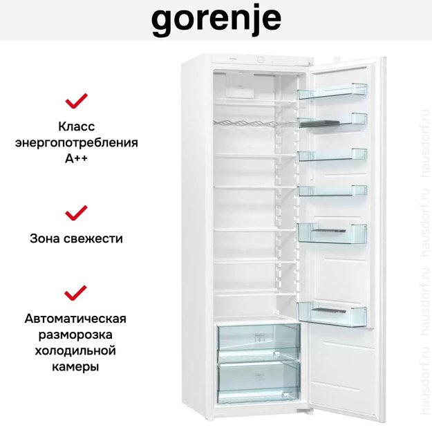 Встраиваемый однокамерный холодильник Gorenje RI4182E1 — замечательный выбор для всех, кто нуждается в надежном и современном приборе, чтобы обустроить кухню по последнему слову техники.