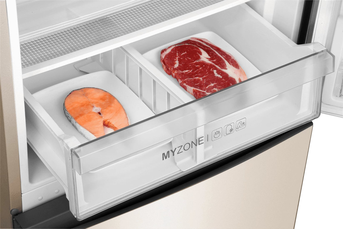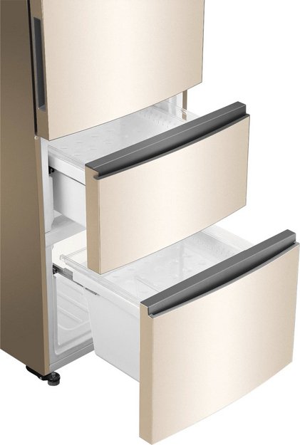 Трехкамерные модели выпускаются в нескольких вариантах. В некоторых случаях в качестве третьей камеры поступает так называемая зона свежести — отделение, где поддерживается температура около 0 градусов. В другом варианте подобные модели имеют морозильную камеру, состоящую из двух выдвижных ящиков.