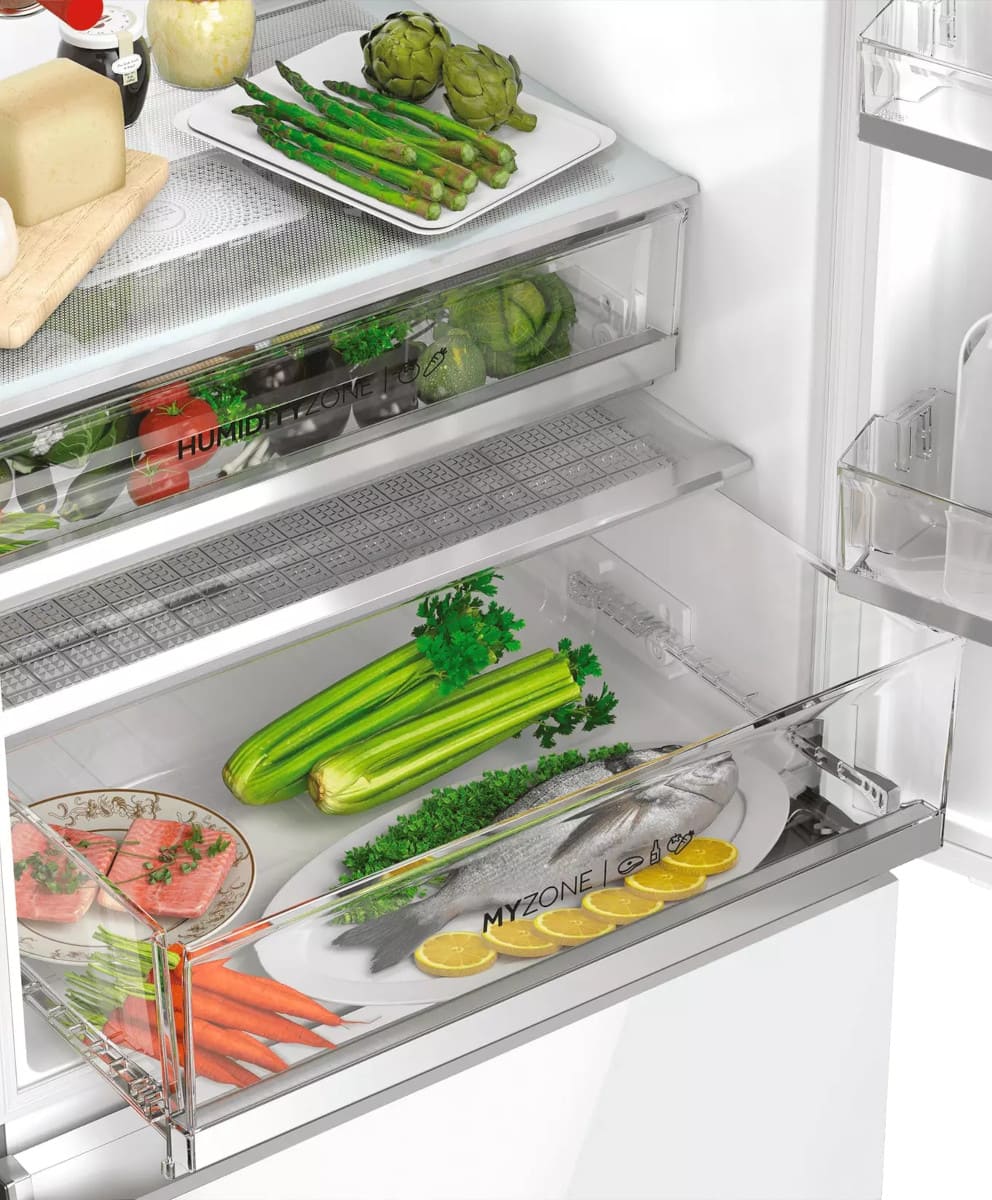 Ящики для продуктов изготавливаются либо целиком из прозрачного пластика, либо часто имеют переднюю прозрачную панель, которая обеспечивает лучший обзор. Полки в большинстве холодильников могут перемещаться по высоте, устанавливаются на специальных направляющих и без труда снимаются для очистки.