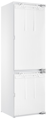 Встраиваемые холодильники монтируются в нишу или колонну. Передняя их часть закрывается декоративным мебельным фасадом и снаружи не отличается от дверцы обычного кухонного шкафа, так что их не нужно подбирать под интерьер помещения. Объем этих холодильников, как правило, несколько меньше, чем у отдельностоящих, так как при встраивании необходимо оставлять свободное пространство для вентиляции. Они отличаются меньшим уровнем шума, а также лучше держат холод и отличаются большей экономичностью из-за дополнительного слоя изоляции. Ассортимент этих холодильников не так велик, как у отдельно стоящих, установка более трудоемкая, а стоимость обычно несколько выше.