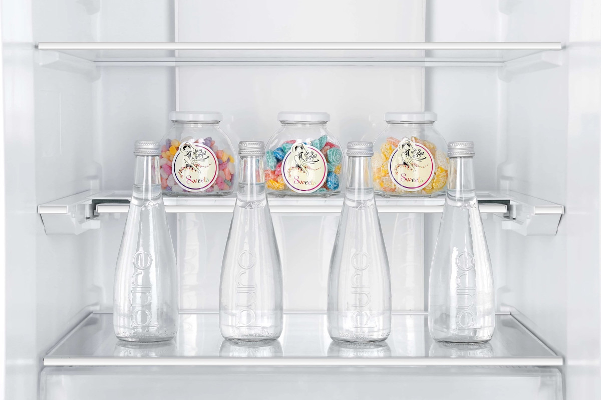 Эффектный внешний вид имеют холодильники с фасадом из закаленного стекла с защитой от отпечатков пальцев. Стеклянные фасады позволяют зрительно раздвинуть пространство и подходят к любому стилю интерьера.