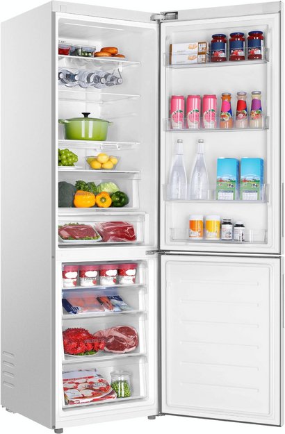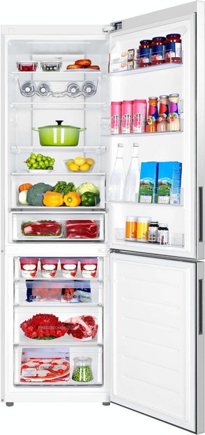 Данная модель — отдельностоящая, поэтому нужно тщательно подобрать место для ее размещения. Благодаря внушительным размерам, в частности высоте, она подходит большим пространствам — просторной кухне, еврогостиной. Вы можете поменять направление открывания двери, так как упор переставляемый и ее можно перевесить на другую сторону. Такая функция открывает больше возможностей для установки. Холодильник с морозильником обладает всеми опциями, которые чаще всего ищут и выбирают покупатели. Стандартная конфигурация — универсальный вариант для любой квартиры. Количество камер: 2.