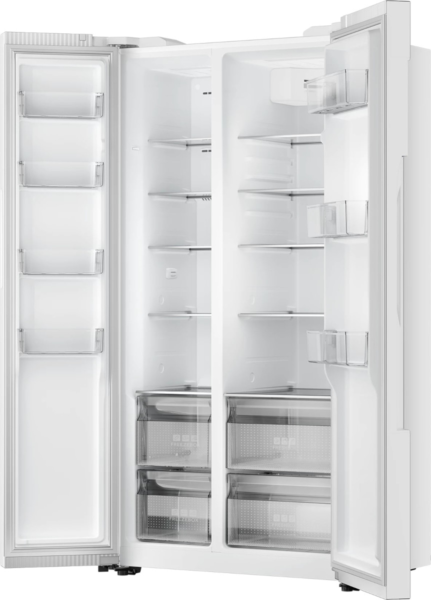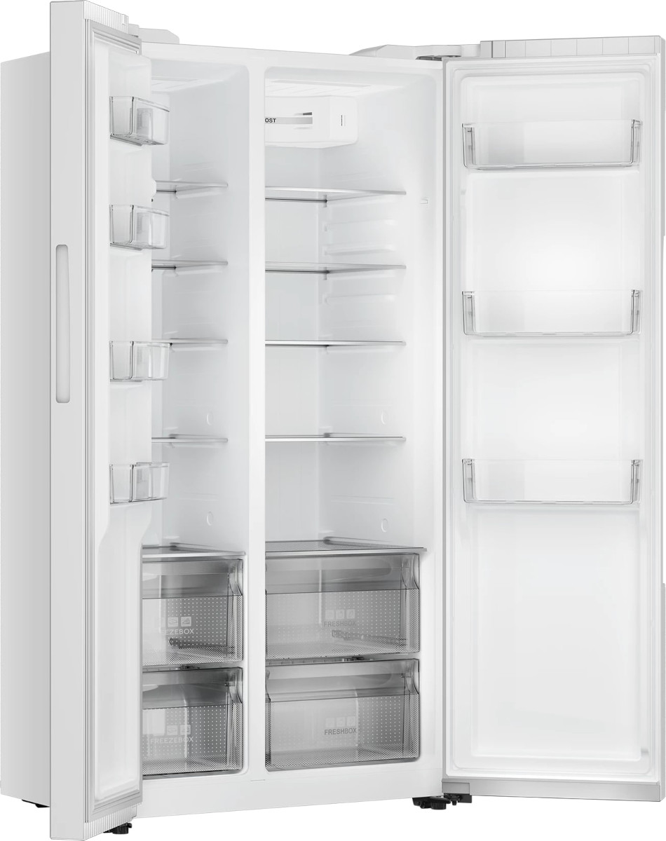 Данная модель — отдельностоящая, поэтому нужно тщательно подобрать место для ее размещения. Холодильник Side-by-Side с необычным расположением камер — сбоку друг от друга — позволяет увеличить объем продуктов для хранения. Такой вариант подходит обладателям просторной кухни, большим семьям, людям, которые запасают продукты и готовят впрок. Количество камер: 2.