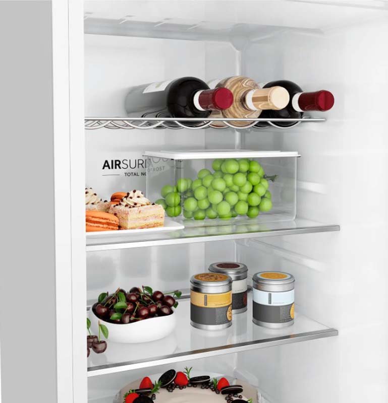 No Frost (Total No Frost, Frost Free): вентилятор обеспечивает циркуляцию охлажденного воздуха, благодаря чему лед не нарастает на стенке, а концентрируется только на скрытом внутри холодильника испарителе. Талая вода собирается в специальной емкости и испаряется. Такой холодильник не нужно размораживать – это экономит время и позволяет не останавливать прибор. Благодаря этим плюсам в современных моделях No Frost – самая распространенная система.