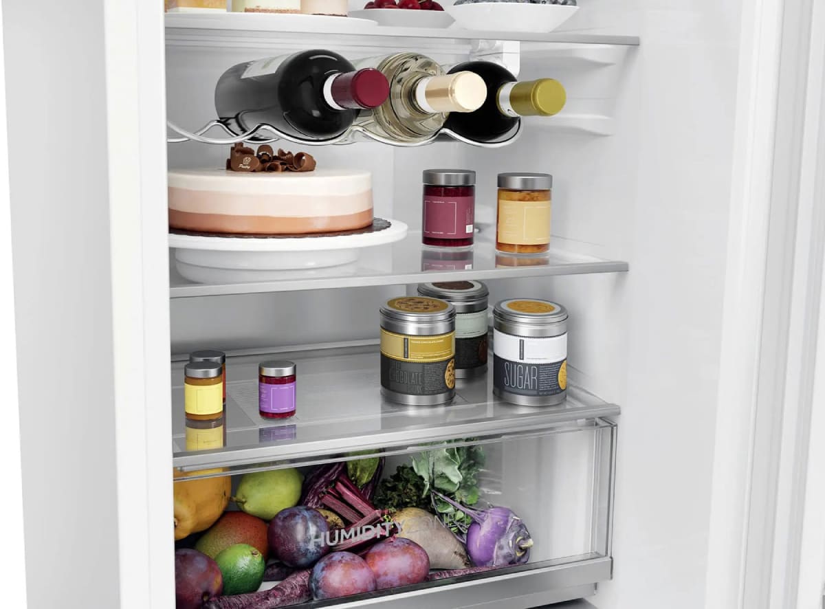 Ящики для продуктов изготавливаются либо целиком из прозрачного пластика, либо часто имеют переднюю прозрачную панель, которая обеспечивает лучший обзор. Полки в большинстве холодильников могут перемещаться по высоте, устанавливаются на специальных направляющих и без труда снимаются для очистки.