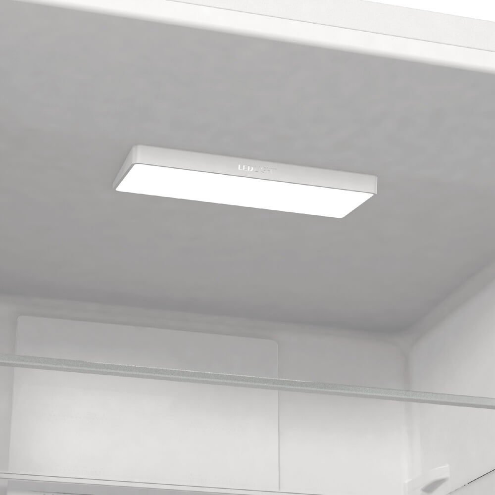 Внутреннее освещение холодильной камеры позволяет обеспечить хороший обзор содержимого и быстро найти необходимые продукты. Чем меньше времени будет открыта дверца холодильника, тем лучше будет поддерживаться в камере выбранная температура, следовательно, улучшится и качество хранения продуктов.