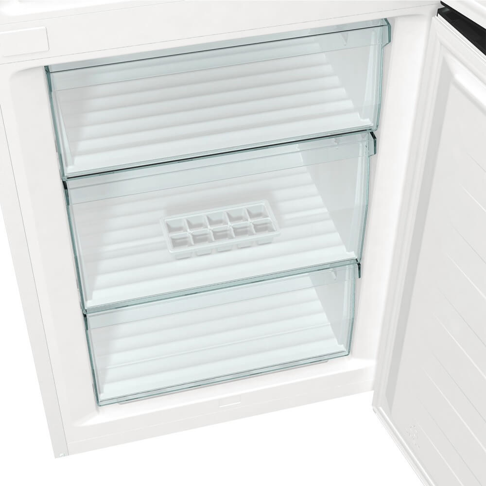 No Frost (Total No Frost, Frost Free): вентилятор обеспечивает циркуляцию охлажденного воздуха, благодаря чему лед не нарастает на стенке, а концентрируется только на скрытом внутри холодильника испарителе. Талая вода собирается в специальной емкости и испаряется. Такой холодильник не нужно размораживать – это экономит время и позволяет не останавливать прибор. Благодаря этим плюсам в современных моделях No Frost – самая распространенная система.