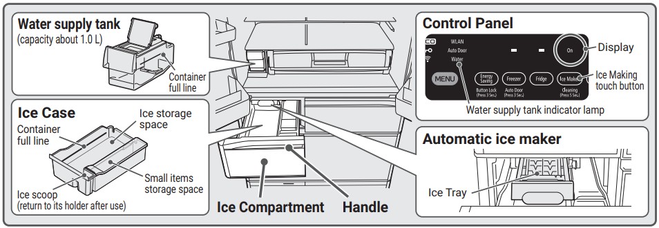 В некоторых моделях есть отдельная панель управления для льдогенератора, подсветка.