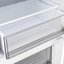 Полки в отделении бывают нескольких типов. Чаще всего встречаются полки из закаленного или ударопрочного стекла. Закаленное стекло выдерживает особенно большие нагрузки до 25 кг, так что на них можно устанавливать посуду из любого материала. Стекло является безопасным нейтральным материалом, не желтеет и не портится со временем, а также быстро и легко моется. Для того чтобы предотвратить проливание жидкости, полки оснащаются металлической или пластиковой окантовкой.