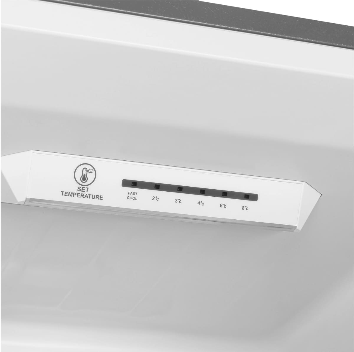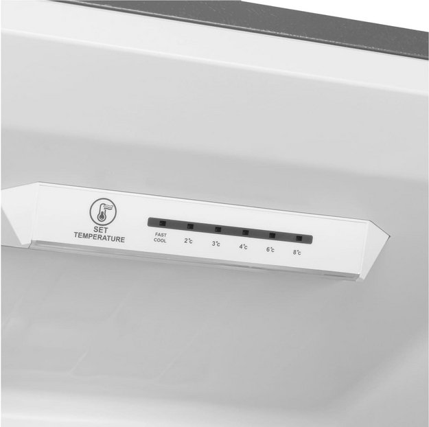 Гораздо точнее сориентироваться по индикаторам можно в холодильниках с электронной системой управления. Эти устройства обычно оснащены дисплеем, на котором высвечиваются значения фактической температуры в холодильной и морозильной камерах. Рядом с ними располагаются кнопки, во многих случаях сенсорные, при помощи которых можно регулировать температуру в каждой камере отдельно, и индикаторы включения этих камер. Здесь же, на панели инструментов, находятся индикаторы, указывающие на активацию дополнительных опций — например, режимов быстрого замораживания и быстрого охлаждения, отпускного режима, блокировки панели управления от детей.