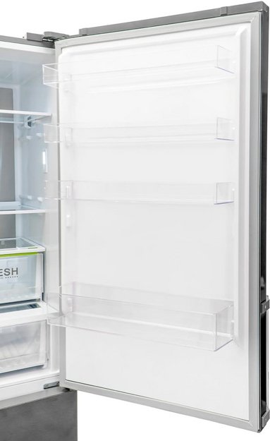 Холодильники с так называемой французской дверью или French Door также имеют распашные двери, но за ними находится не две, а одна камера. Эти двери занимают не всю высоту холодильника, а только ее часть. В нижней части подобных холодильников могут находиться либо еще две распашные двери, либо выдвижные морозильные ящики.