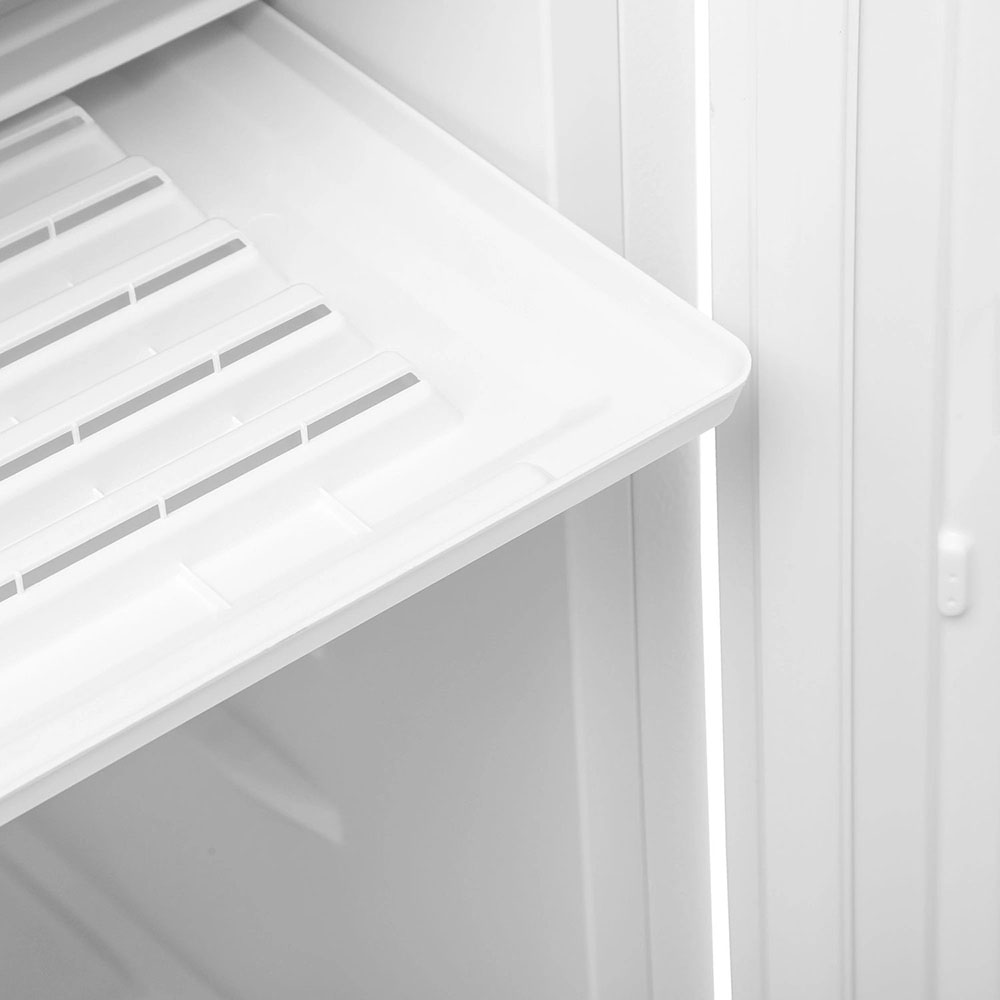 Полки в холодильнике позволяют рационально организовать хранение продуктов, обеспечить легкий поиск и доступ к ним. Основные материалы для изготовления полок — это пластик, стекло и металл. Часть полок можно переставлять по высоте или складывать вдвое или втрое.
