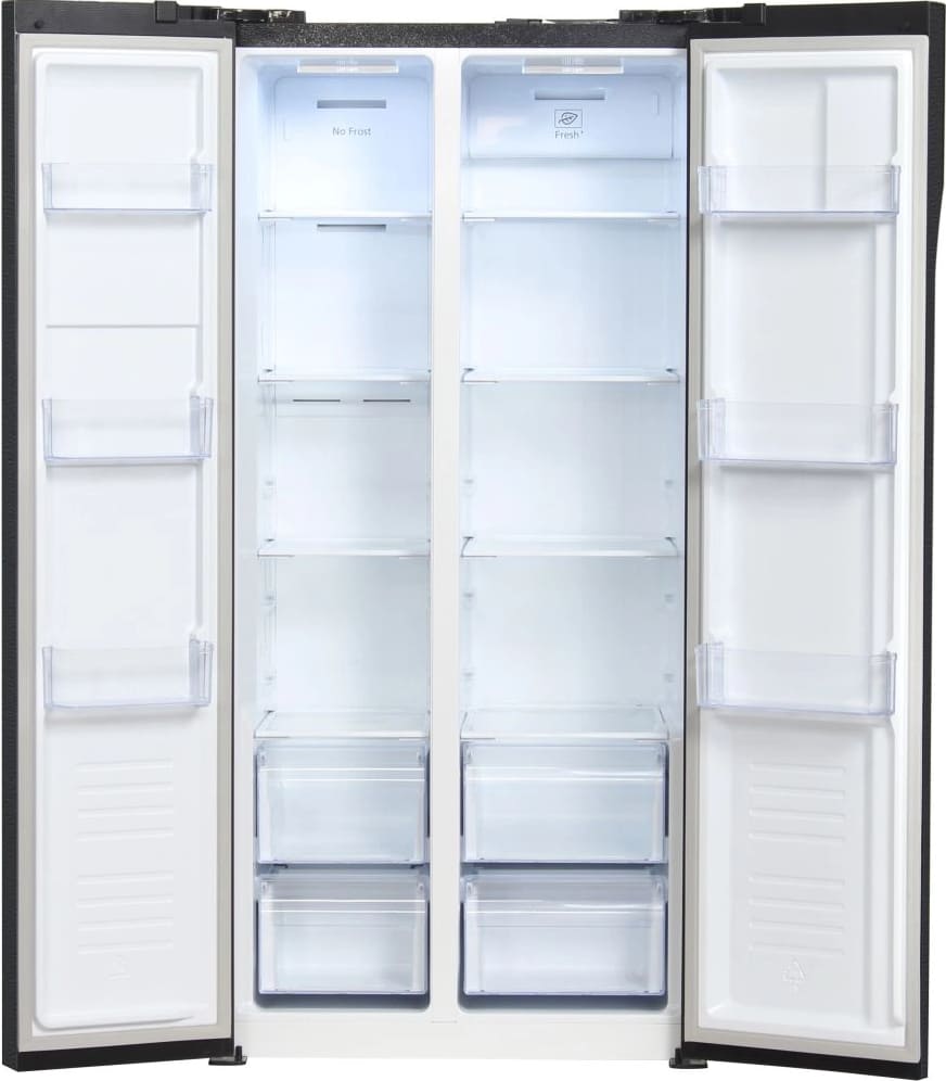 Данная модель — отдельностоящая, поэтому нужно тщательно подобрать место для ее размещения. Холодильник Side-by-Side с необычным расположением камер — сбоку друг от друга — позволяет увеличить объем продуктов для хранения. Такой вариант подходит обладателям просторной кухни, большим семьям, людям, которые запасают продукты и готовят впрок. Количество камер: 2.