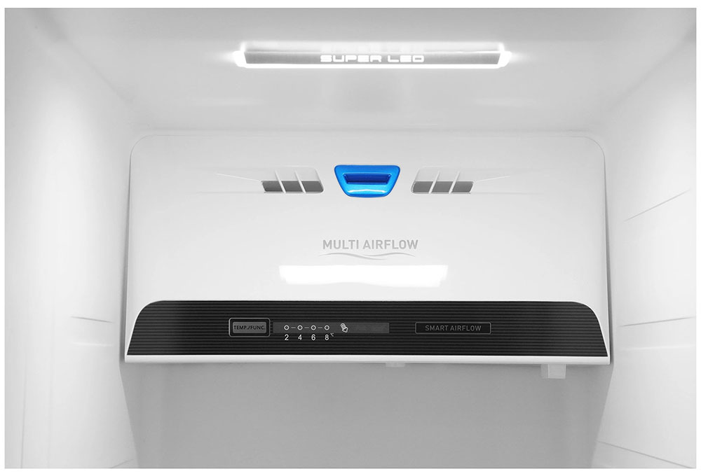 No Frost (Total No Frost, Frost Free): вентилятор обеспечивает циркуляцию охлажденного воздуха, благодаря чему лед не нарастает на стенке, а концентрируется только на скрытом внутри холодильника испарителе. Талая вода собирается в специальной емкости и испаряется. Такой холодильник не нужно размораживать – это экономит время и позволяет не останавливать прибор. Благодаря этим плюсам в современных моделях No Frost – самая распространенная система.