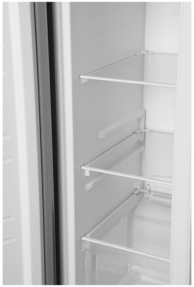 Данная модель — отдельностоящая, поэтому нужно тщательно подобрать место для ее размещения. Холодильник Side-by-Side с необычным расположением камер — сбоку друг от друга — позволяет увеличить объем продуктов для хранения. Такой вариант подходит обладателям просторной кухни, большим семьям, людям, которые запасают продукты и готовят впрок. Количество камер: 2.
