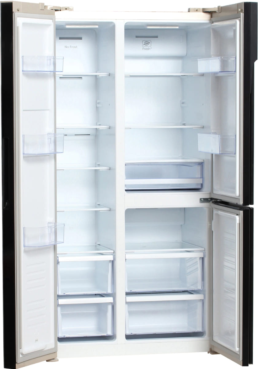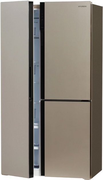 Данная модель — отдельностоящая, поэтому нужно тщательно подобрать место для ее размещения. Холодильник Side-by-Side с необычным расположением камер — сбоку друг от друга — позволяет увеличить объем продуктов для хранения. Такой вариант подходит обладателям просторной кухни, большим семьям, людям, которые запасают продукты и готовят впрок. Количество камер: 3.