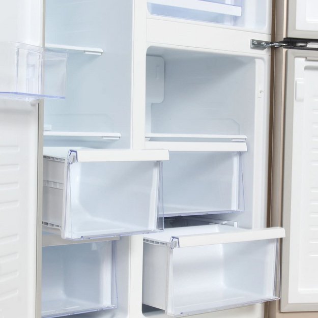 Внутреннее наполнение холодильной и морозильной камер включает многочисленные и разнообразные полки, ящики, контейнеры. Все они используются для более удобного и рационального размещения продуктов, которое обеспечивает хороший обзор содержимого холодильника и быстрый поиск.