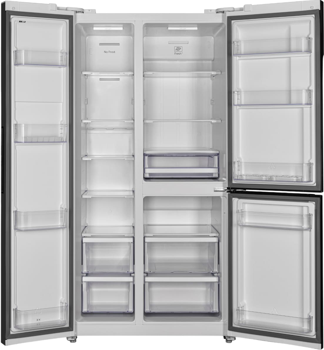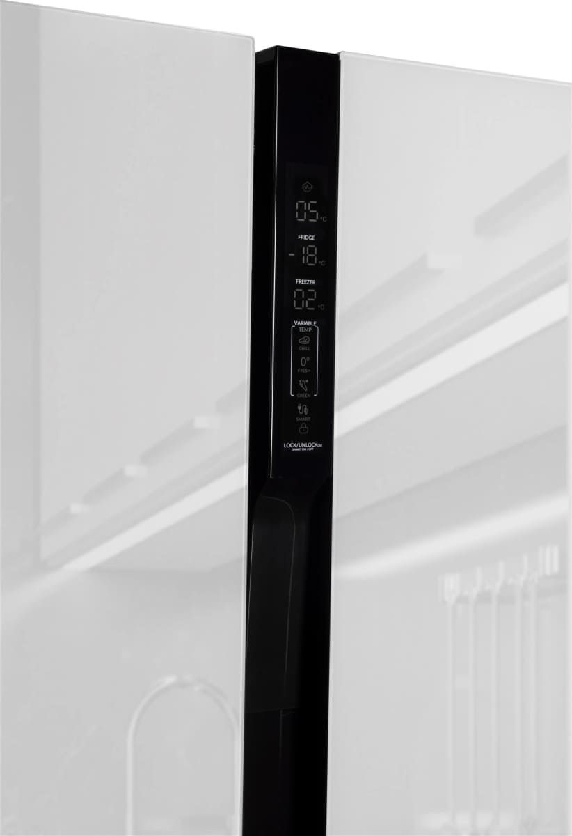 Данная модель — отдельностоящая, поэтому нужно тщательно подобрать место для ее размещения. Холодильник Side-by-Side с необычным расположением камер — сбоку друг от друга — позволяет увеличить объем продуктов для хранения. Такой вариант подходит обладателям просторной кухни, большим семьям, людям, которые запасают продукты и готовят впрок. Количество камер: 3.
